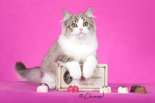 Fanny lives an easy life, retired here at iCandy. Fanny had a stellar kitten career, then earned her Grand Championship in two shows right before shows shut down due to Covid. She had several litters here and produce Raisinette who was the top-scoring RagaMuffin in CFA. Fanny’s motto in life is: “Eat and enjoy.”